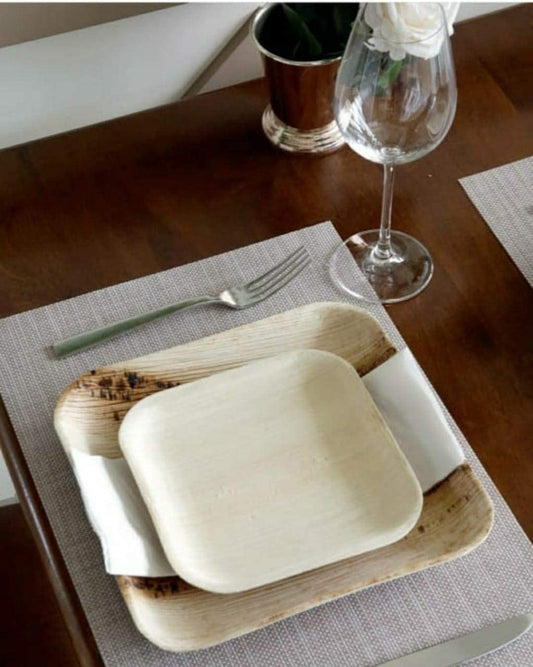 6" Inch Square Decorative Palm Leaf Fiber Plate