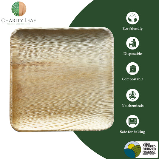 12" Inch Square Decorative Palm Leaf Fiber Plate