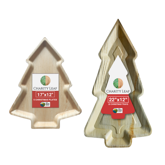 Christmas Bundle - 17x12" Tree & 22x12" Tree Decorative Palm Leaf Fiber Trays