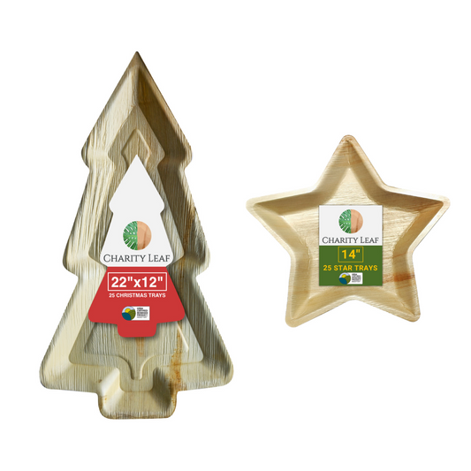 Christmas Bundle - 22x12" Tree & 14" Star Decorative Palm Leaf Fiber Trays