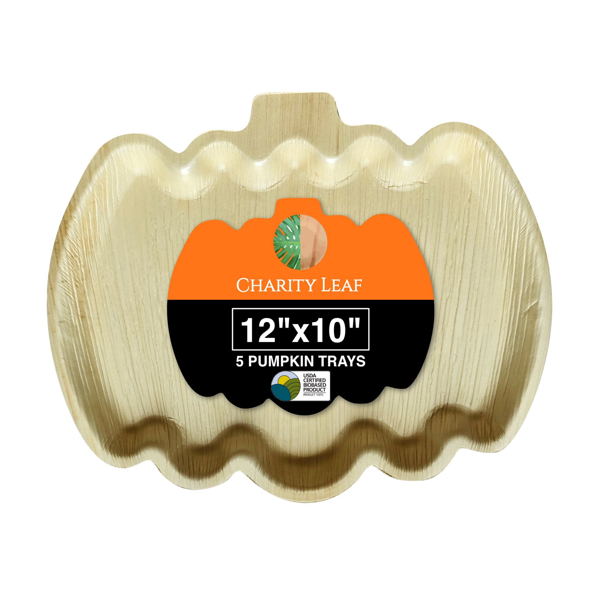 This 12"x10" Inch Pumpkin Display Trays by Charity Leaf is made from naturally fallen palm leaves, offering a beautiful and sustainable alternative to foam and plastic-based décor pieces. Perfect for creating impactful event displays, rustic charcuterie boards (when lined), or organizing wrapped items at weddings, cafes, or eco-conscious gatherings.