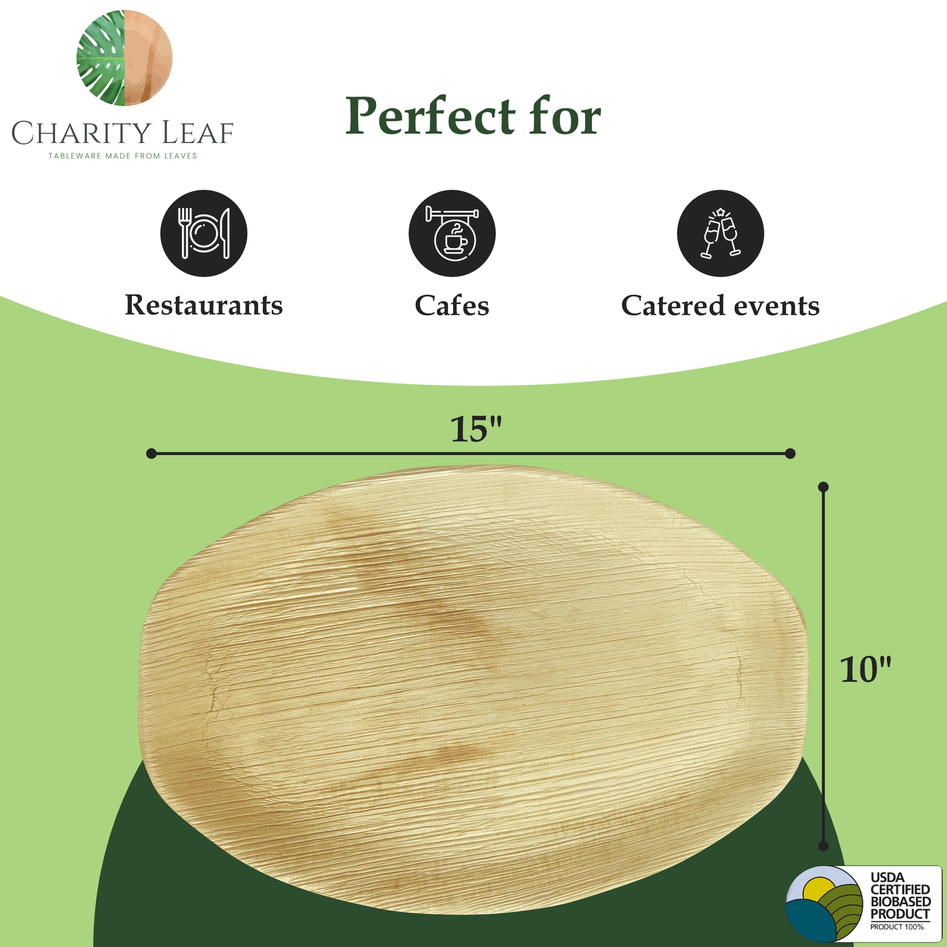 This 15" x 10" Oval Display Tray by Charity Leaf is made from naturally fallen palm leaves, offering a beautiful and sustainable alternative to foam and plastic-based décor pieces. Perfect for creating impactful event displays, rustic charcuterie boards (when lined), or organizing wrapped items at weddings, cafes, or eco-conscious gatherings.