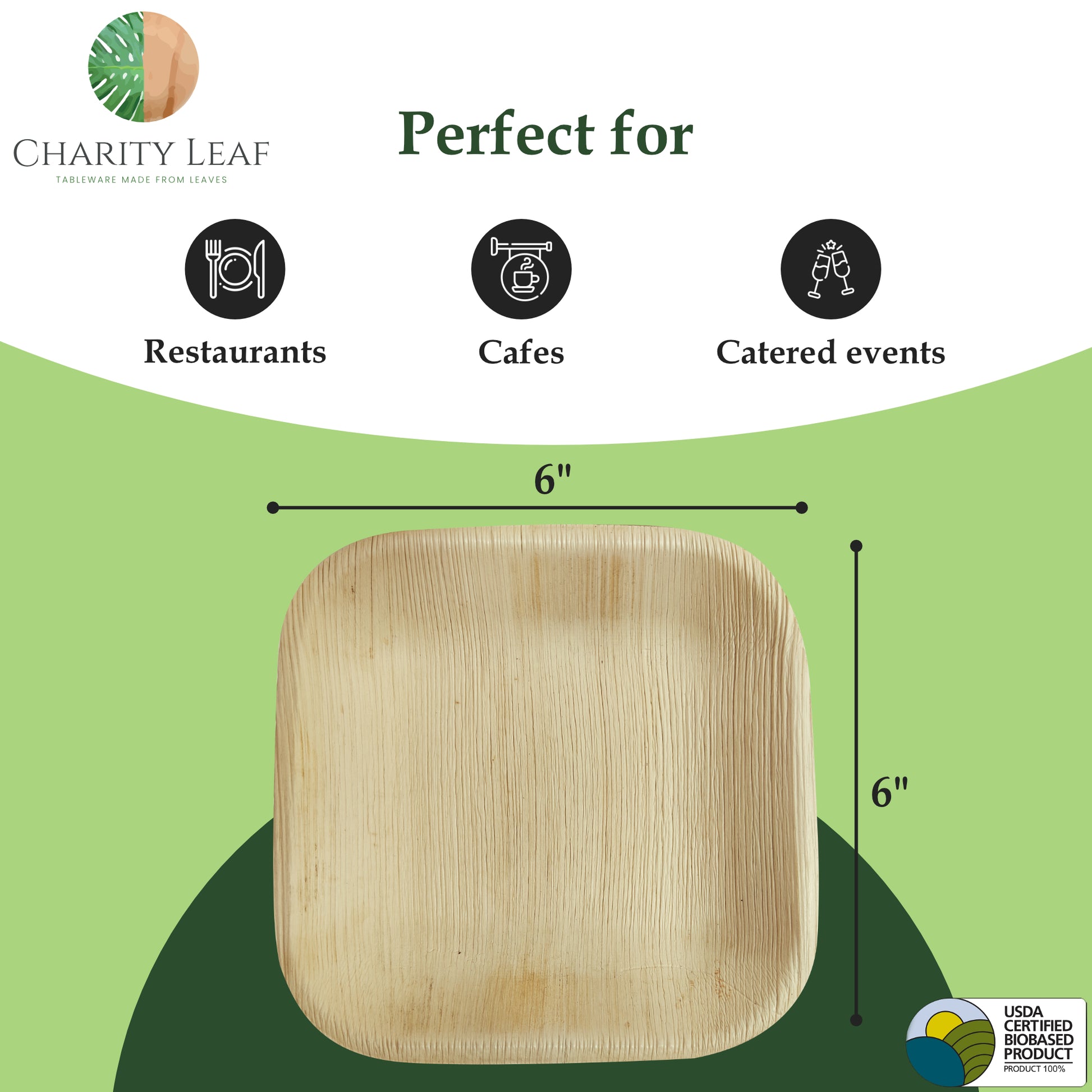This 6" Inch Square Decorative Display Plate by Charity Leaf is made from naturally fallen palm leaves, offering a beautiful and sustainable alternative to foam and plastic-based décor pieces. Perfect for creating impactful event displays, enhancing tablescapes, or organizing wrapped items at weddings, cafes, or eco-conscious gatherings.